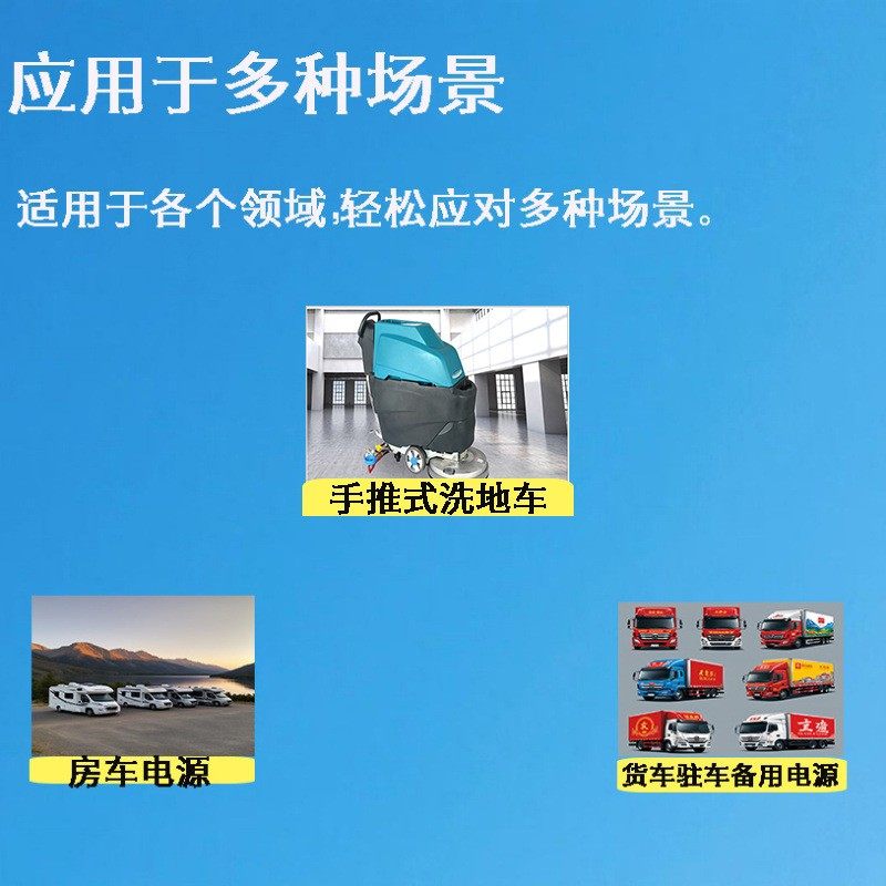 用途广泛:锂电池体积小、重量轻,能够为多种类型的清洁设备供电,包括手推式洗地机、扫地机、擦地机等,满足不同作业需求。